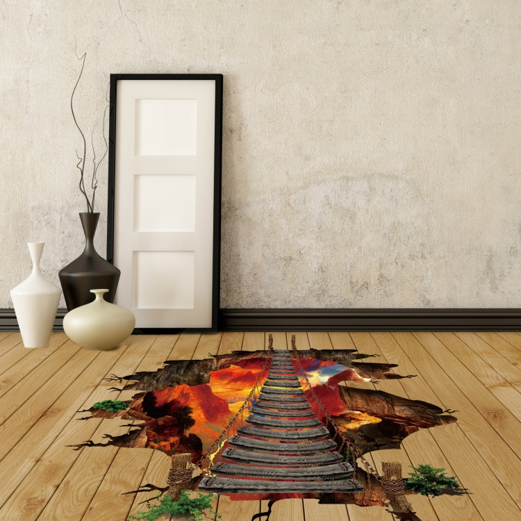 3D Flame Mountain Cable Bridge PVC Removable Floor Stickers