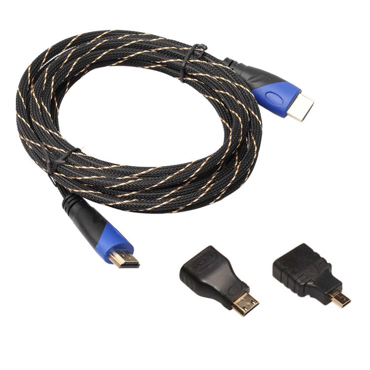 3m HDMI 1.4 Version 1080P Woven Net Line Blue Black Head HDMI Male to HDMI Male Audio Video Connector Adapter Cable with Mini HDMI & Micro HDMI Adapter Set