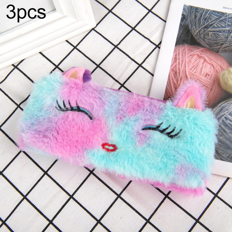 3pcs Laser Color Kitten Plush Student Stationery Pencil Case