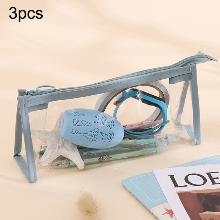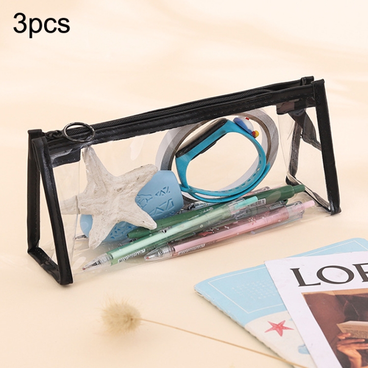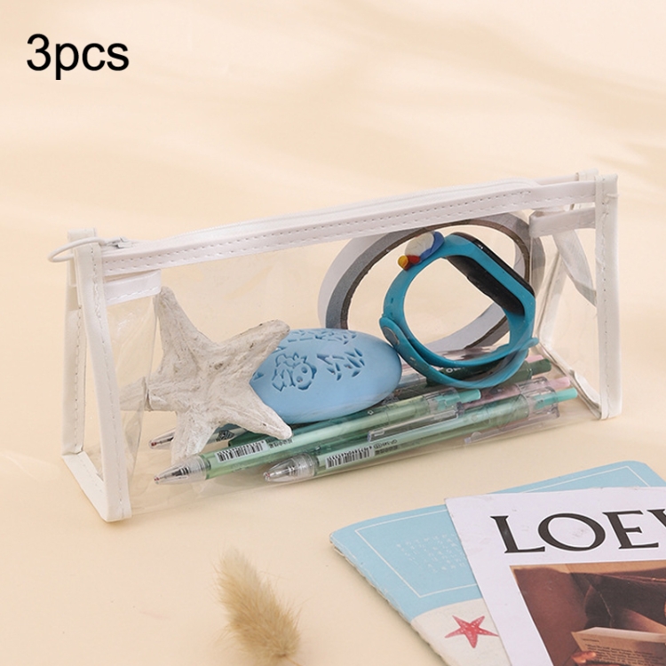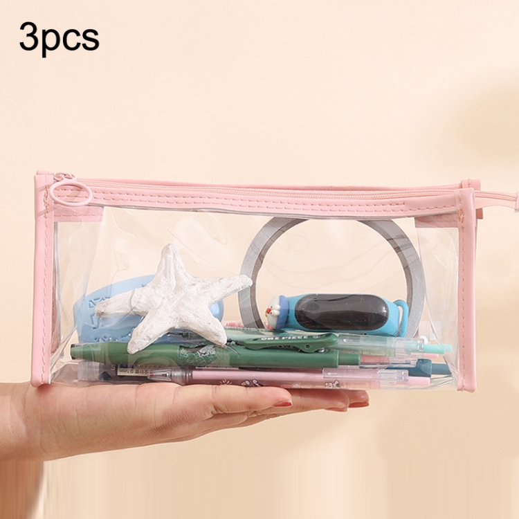 3pcs PVC Student Stationery Storage Transparent Pencil Bag Exam Transparent Zipper Pencil Bag