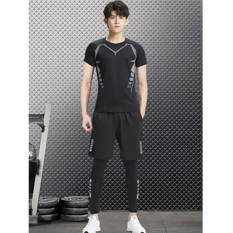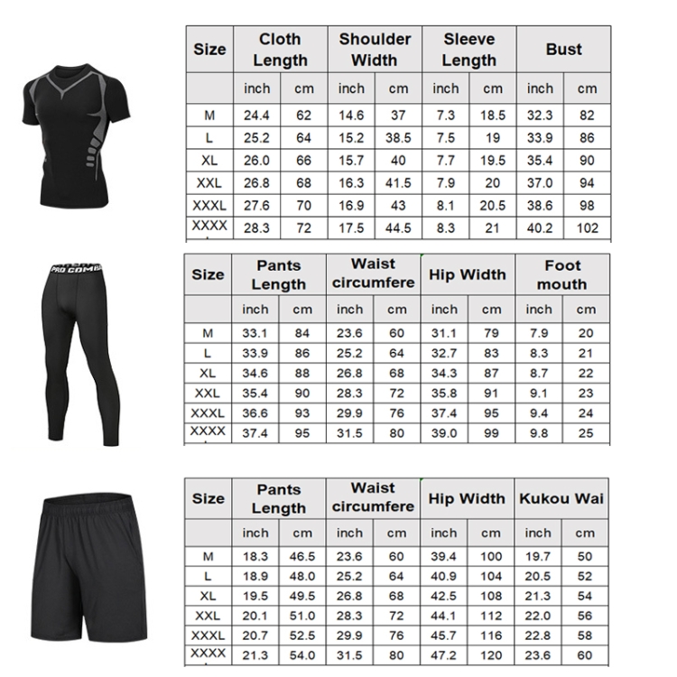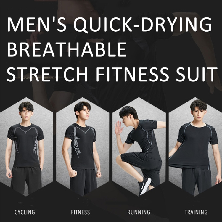 1. Breathable and quick-drying stretch fitness suit for men, comfortable moisture wicking, skin gets rid of sticky feeling. (Men’s leggings + Men’s compression T-shirt + Men’s sweatpants))