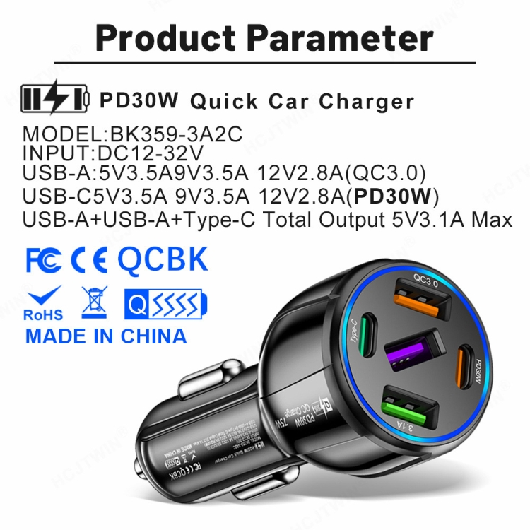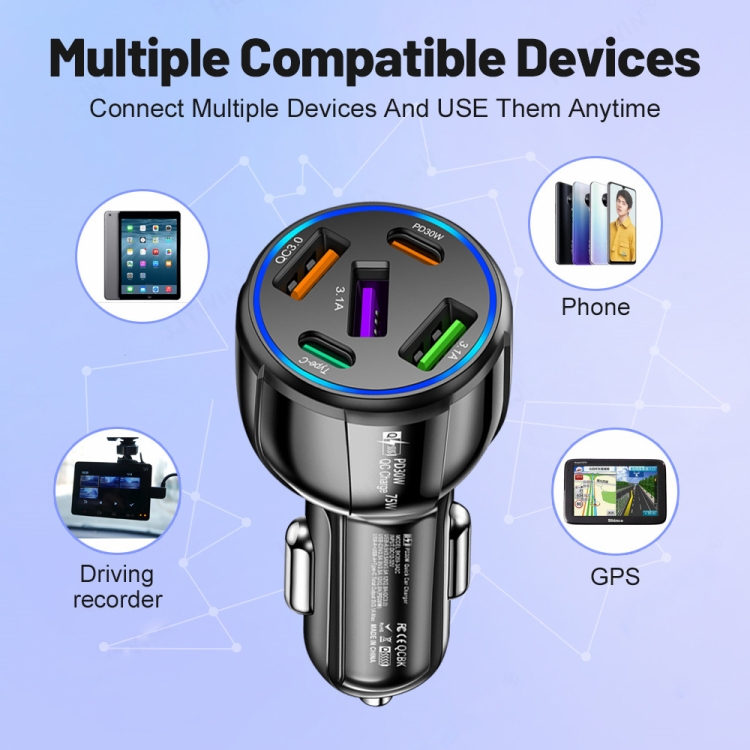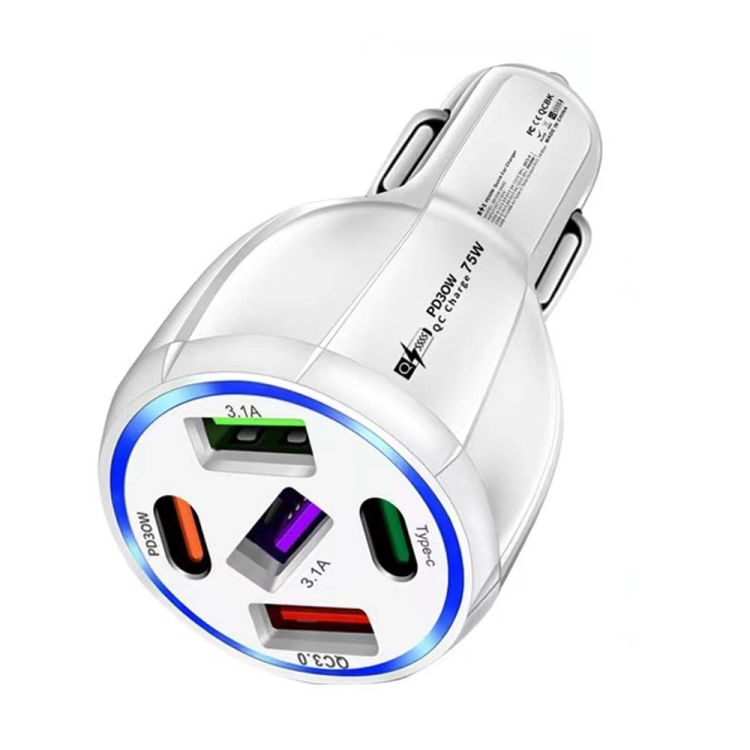 3USB+2PD 75W Dual Line Car Mobile Phone Fast Charging Charger