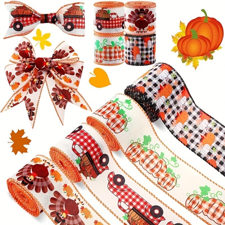 4.55m x 6.3cm Thanksgiving Ribbon Multi-purpose Harvest Season Gift Box Packaging Ribbon