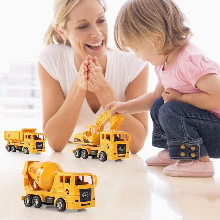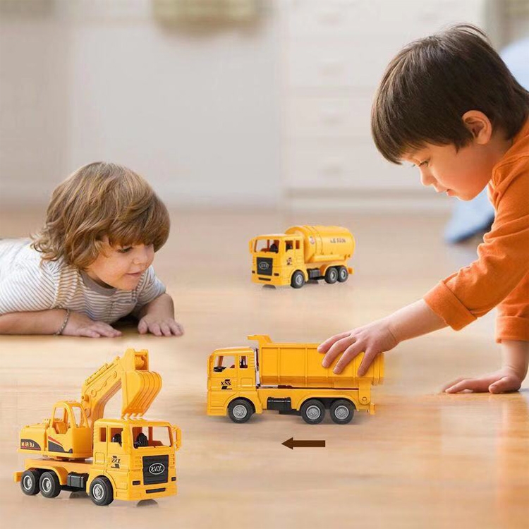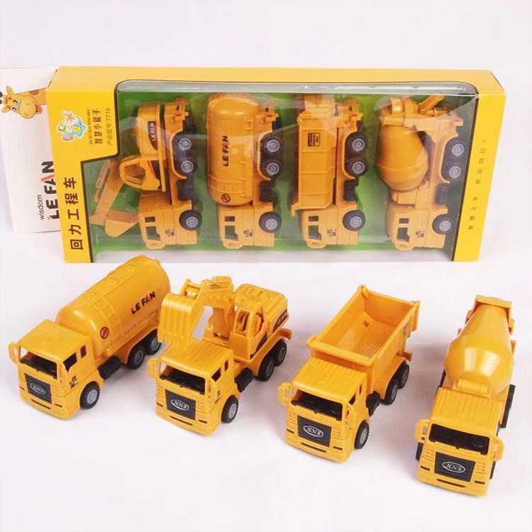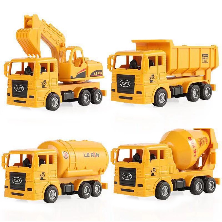 4 in 1 Concrete Mixer Truck + Fuel Tank Truck + Dump Truck + Excavator Inertial Pull Back Car Children Model Toys Car Set