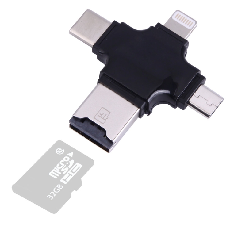 4 in 1 USB-C / Type-C & USB 2.0 & Micro USB & 8 Pin TF Card Reader for MacBook, PC, Laptop, Smart Phone with OTG Function, Support FAT32 & exFAT