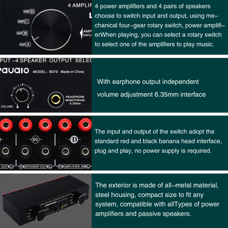 4 Input 4 Ooutput Power Amplifier Speaker Selector Switcher Speaker Comparator