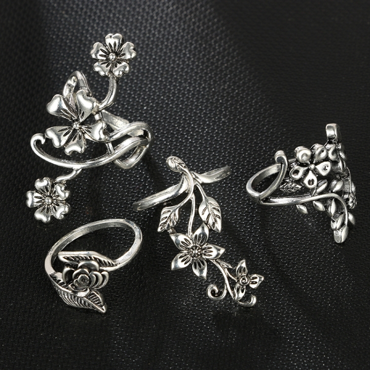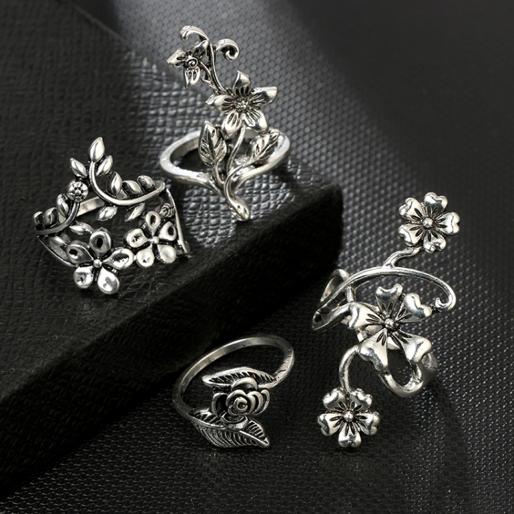 4 PCS/Set Antique Vintage Bohemia Style Rose Flower Rings for Women