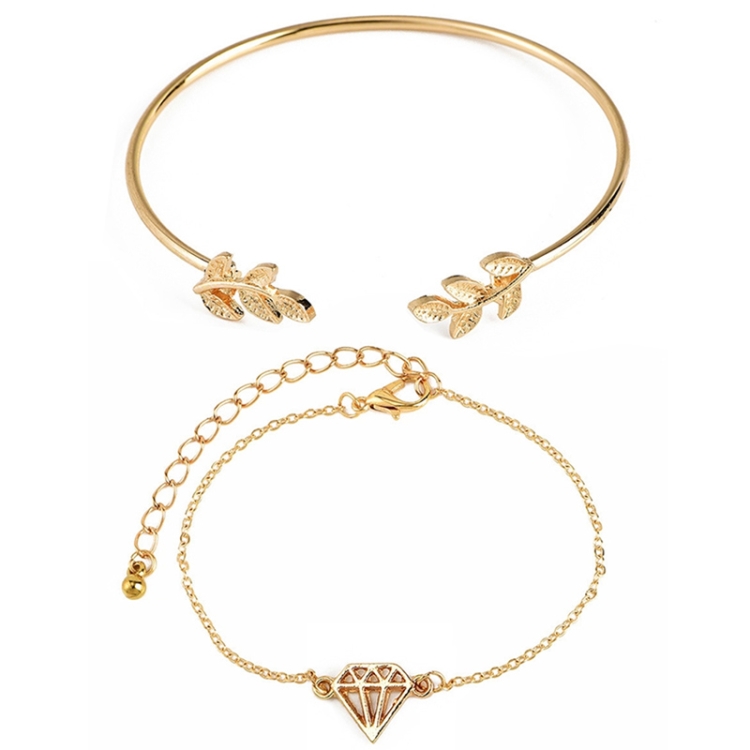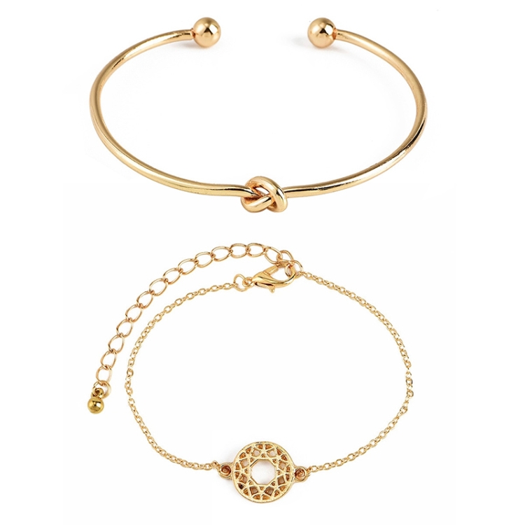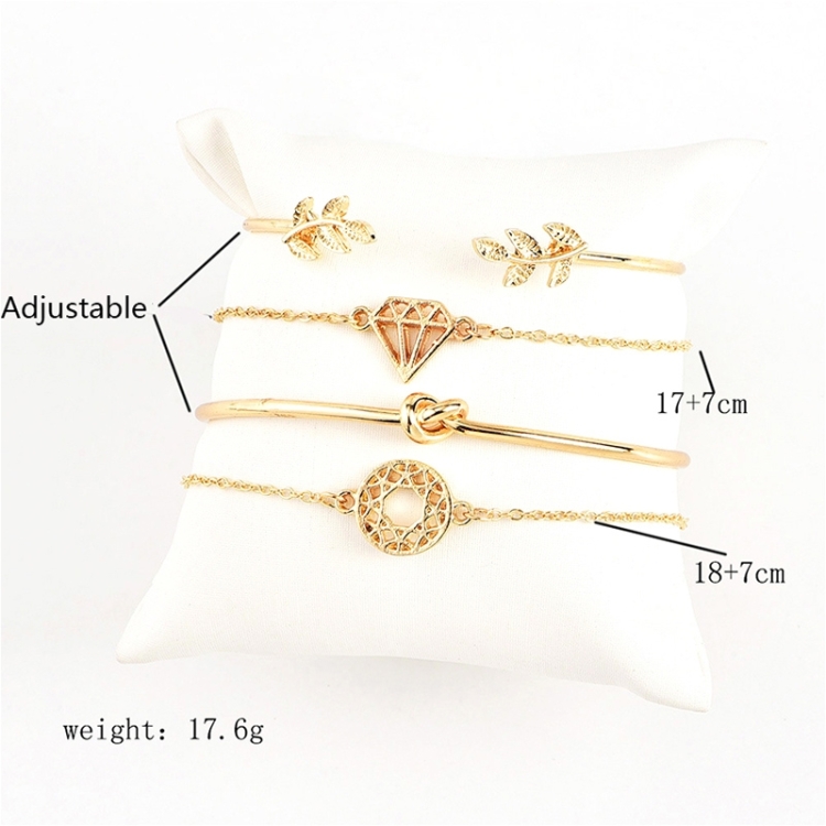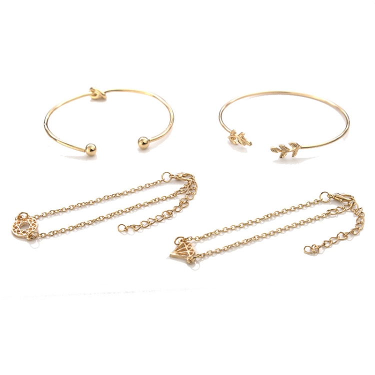 4 Pcs/ Set Bohemian Leaves Knot Round Chain Opening Gold Bracelet Set
