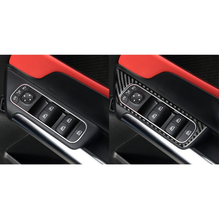 4 PCS / Set Carbon Fiber Car Glass Lift Switch Decorative Sticker for Mercedes-Benz B-Class 2019 / GLB 2020,Right Drive