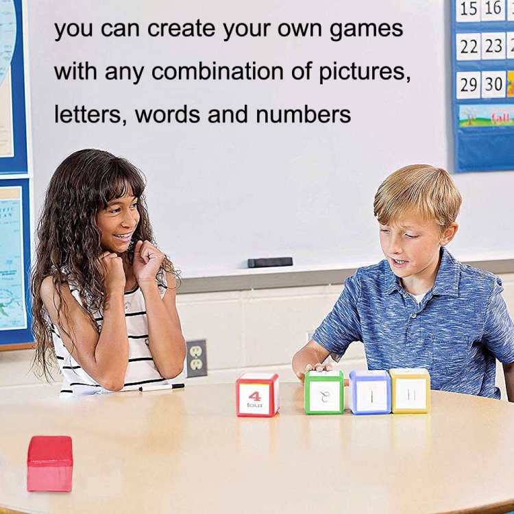 1. There are transparent pockets on all six sides of the dice, you can create your own games with any combination of pictures, letters, words and numbers