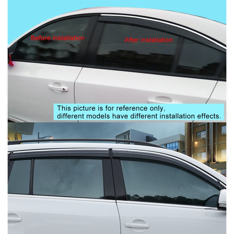2. Usage: Protects Window from rain snow; Prevents rain snow to enter and allows ventilation; Optimizes the exterior look on your car.