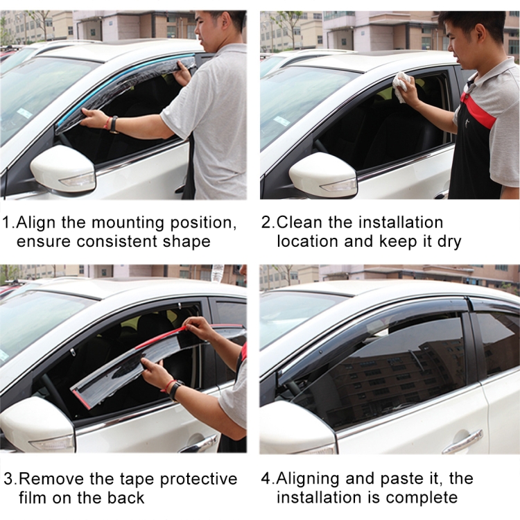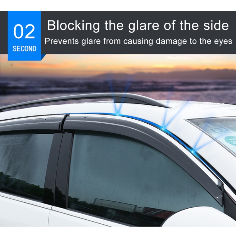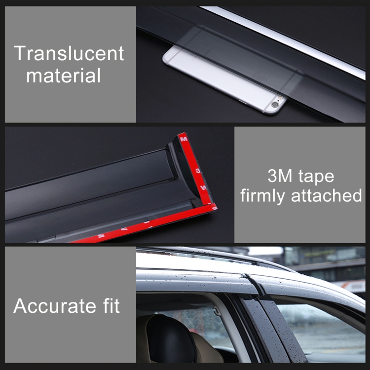 2. Usage: Protects Window from rain snow; Prevents rain snow to enter and allows ventilation; Optimizes the exterior look on your car.