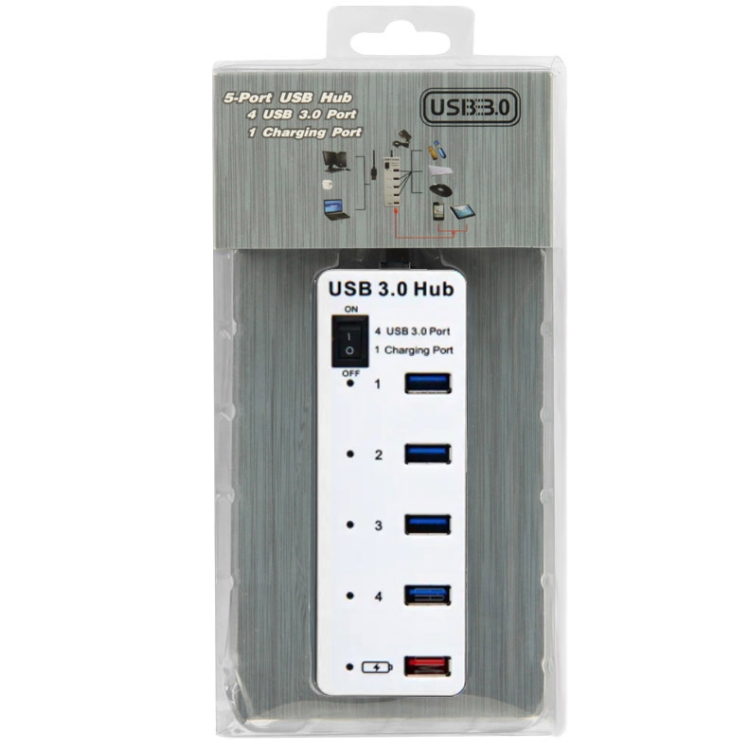 4 Ports USB 3.0 + 1 Port Fast Charging Hub with ON/OFF Switch (BYL-3011)