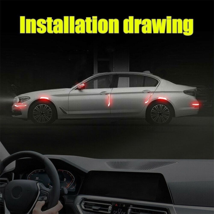 4 Sets Car Reflective Sticker Door Border Anti-Collision Strip Leaf Board Personality Rear View Mirror Warning Sticker