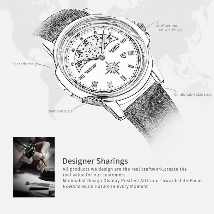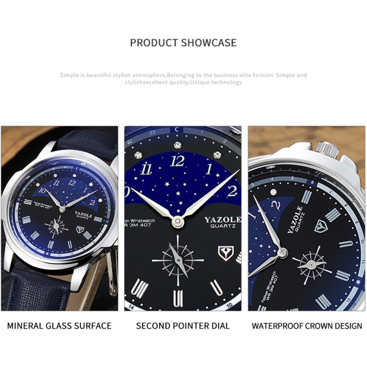 407 YAZOLE Men Fashion Business Leather Band Quartz Wrist Watch(Brown + White)