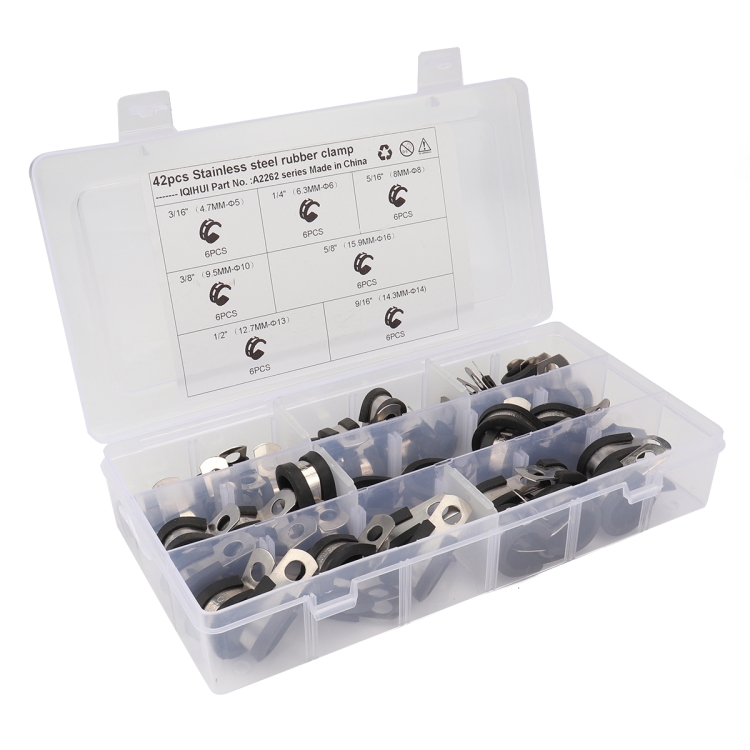42 in 1 Car Rubber Cushion Pipe Clamps Stainless Steel Clamps