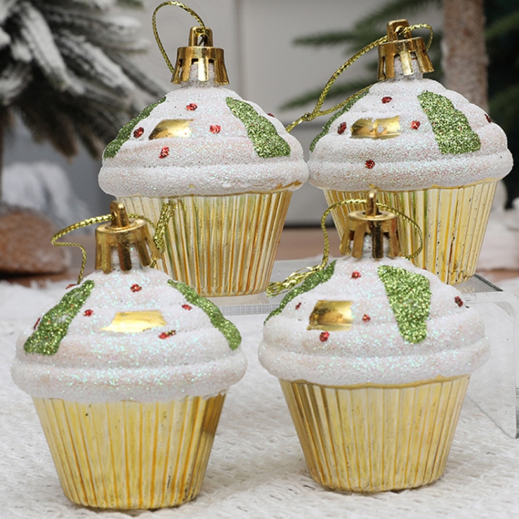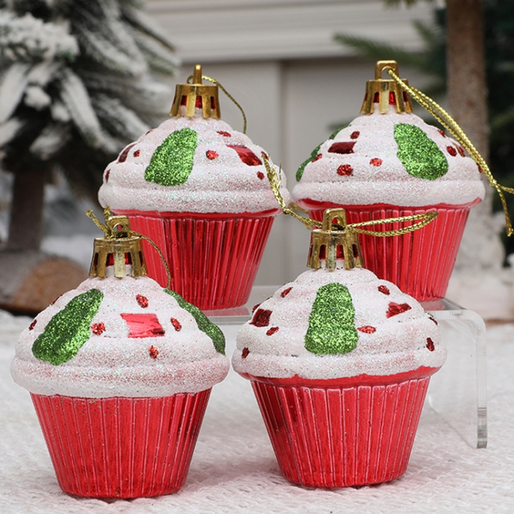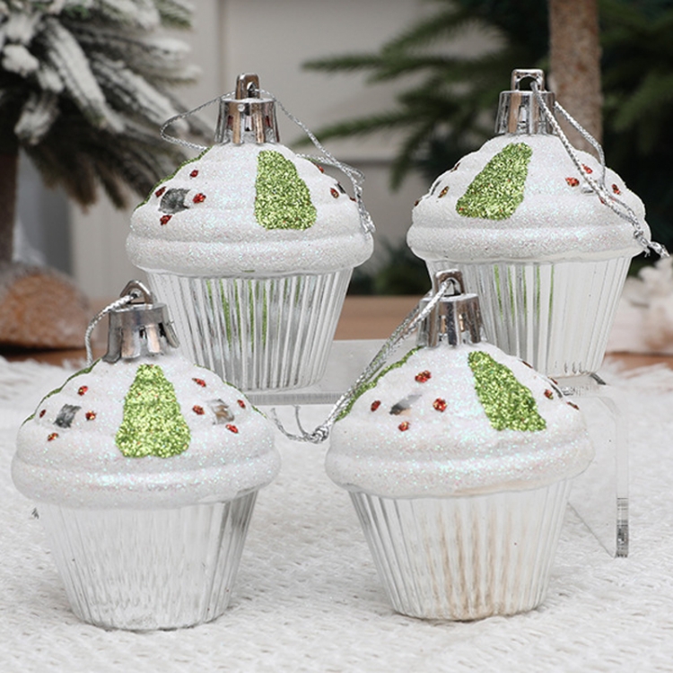4pcs /Box Glossy Round Pastry Christmas Balls Painted Christmas Tree Hanging Decoration