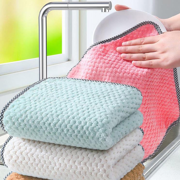 4pcs Hand Towel Hangable Dishcloth Kitchen Rag Non-Stick Oil Absorbent Towel