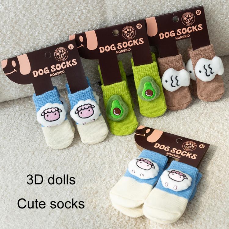 4pcs /Set Pet Dog Socks For Teddy Non-slip Anti-Scratch Anti-Dirty 3D Dolls Socks Dog Shoes