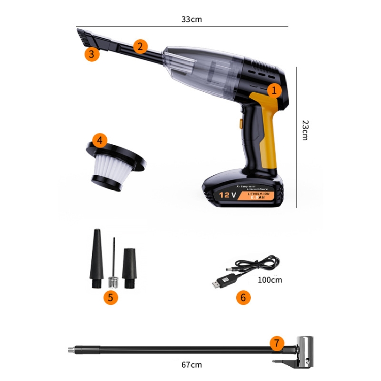 Accessories list: brush, flat tube, inflatable tube, USB charging cable/3m cigarette lighter cable, three kinds of inflatable accessories