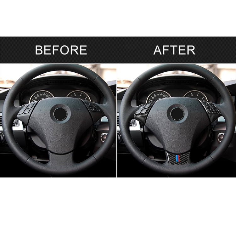 5 in 1 Car Carbon Fiber Tricolor Steering Wheel Button Decorative Sticker for BMW 5 Series E60 2004-2010, Left and Right Drive Universal