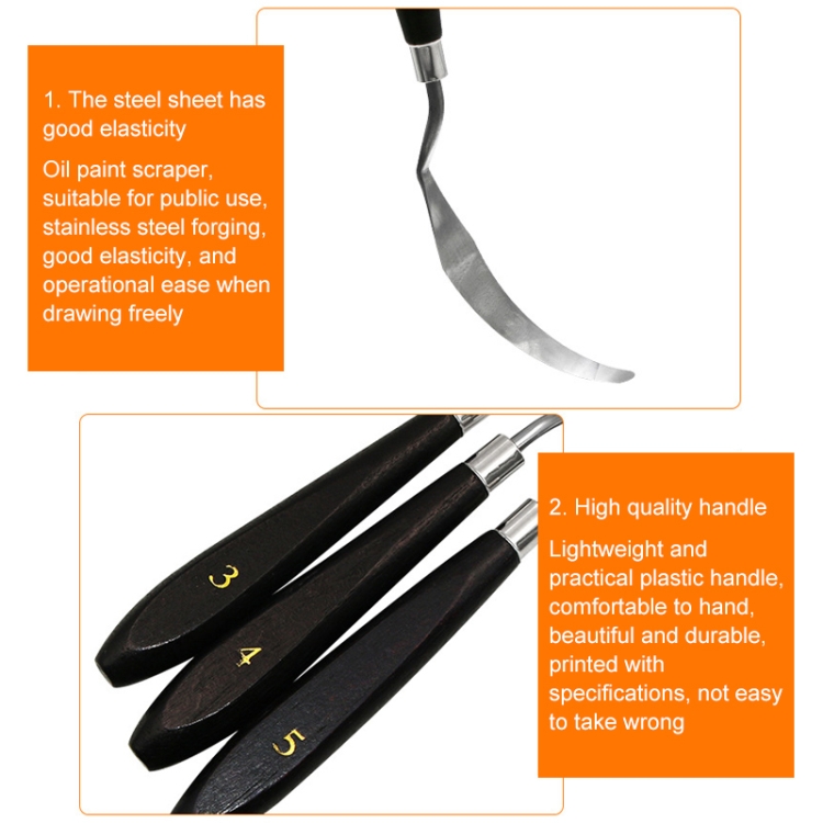 1. Multi-purpose: widely used in various paintings such as oil painting, canvas, acrylic and so on. Not only created a variety of painting expressions, but also different knives have different painting methods.
