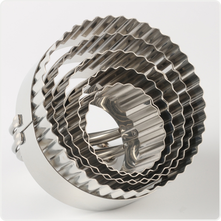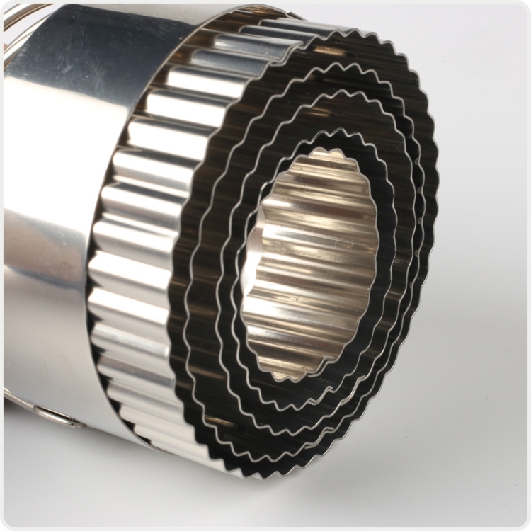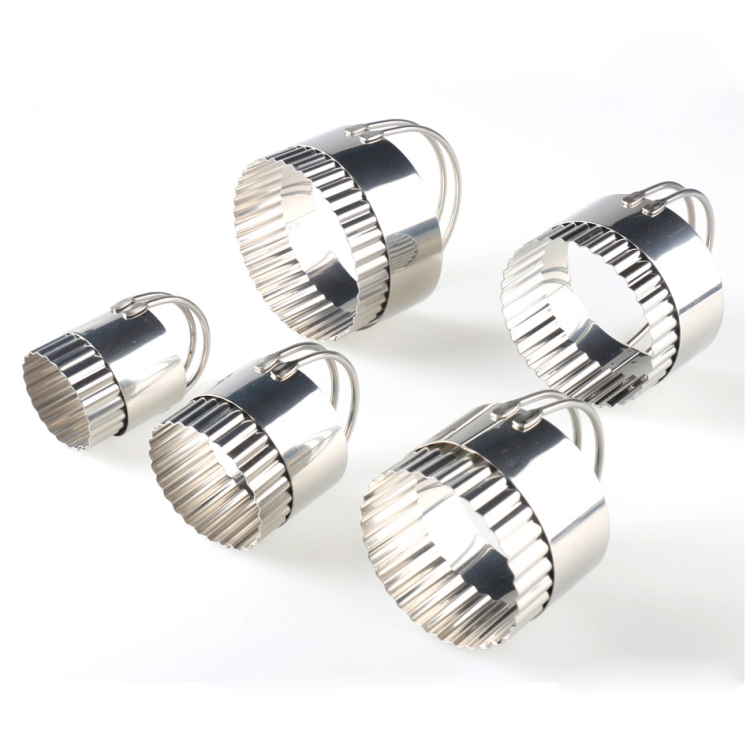 5 in 1 Stainless Steel Circular Wave Pattern Biscuit Cutter Set With Handle Fondant Tool
