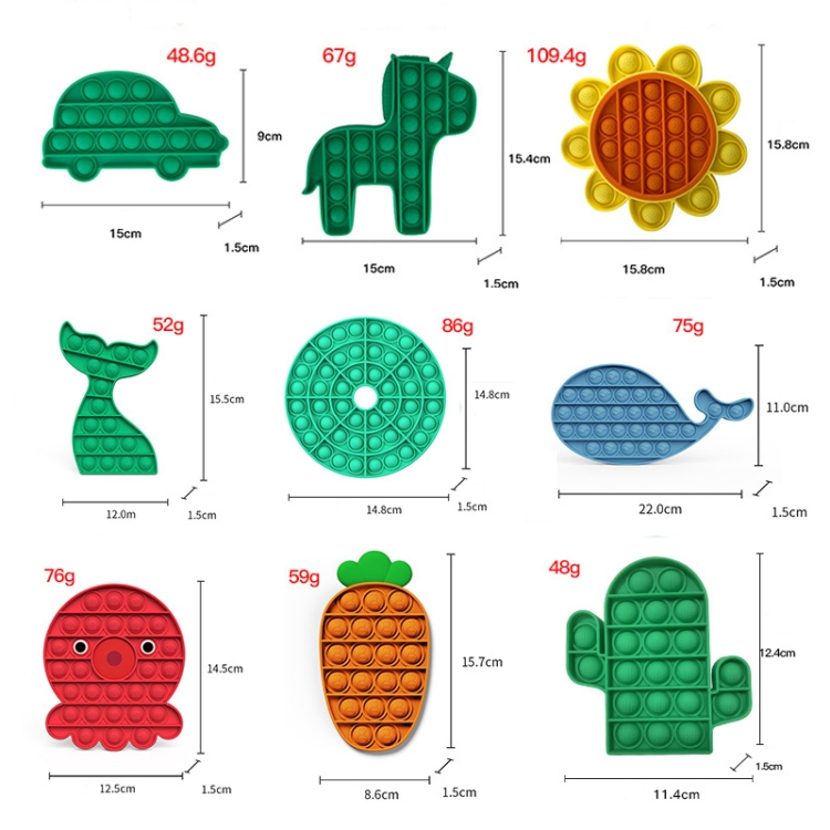3. Dimensions: car: 15×9 cm; pony: 15×15.4 cm; sunflower: 15.8 cm in diameter; mermaid: 12×15.5 cm; hollow plate: 14.8 cm in diameter; whale: 22×11 cm; octopus: 12.5×14.5 Cm; carrot: 8.6×15.7 cm; cactus: 11.4×12.4 cm
