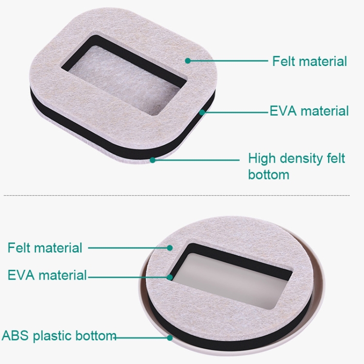 | color | Square Bean-colored Felt Bottom, Square Brown Felt Bottom, Round Bean Color Plastic Bottom, Round Black Plastic Bottom |