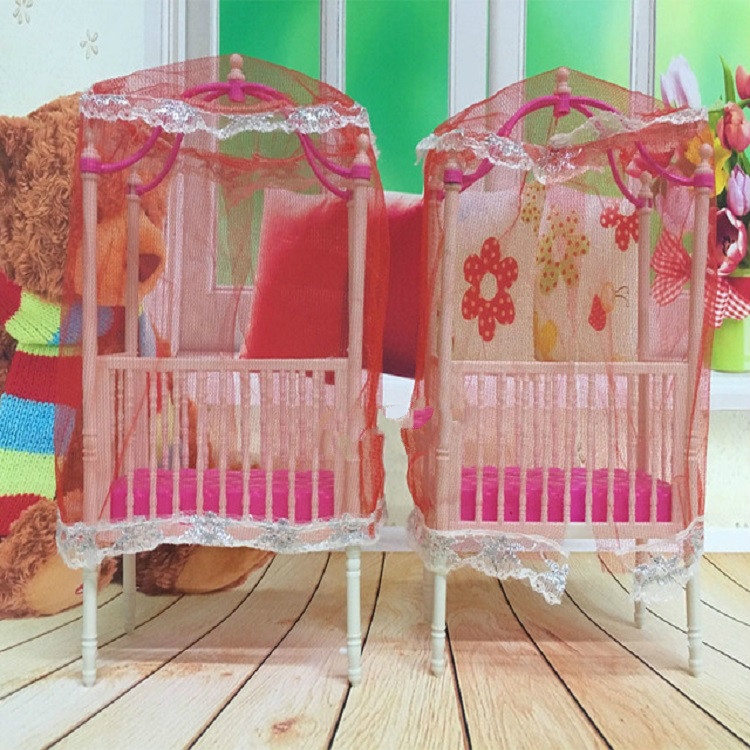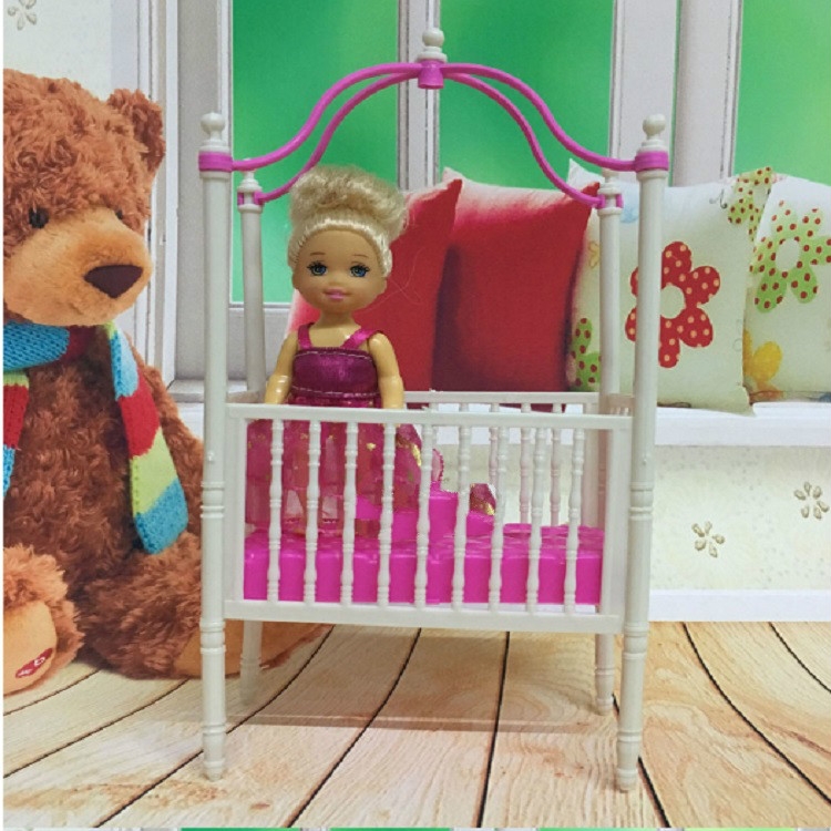 5 PCS Doll House Plastic Baby Cot Miniature Furniture Bedroom Decoration