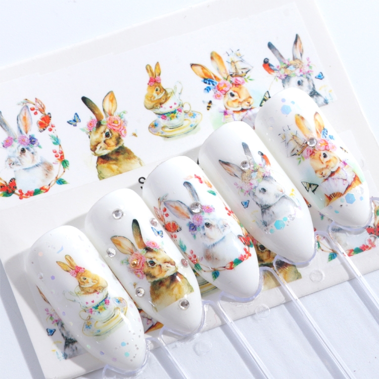 5 PCS Flamingo Nail Stickers Water Decals Cute Animals Rabbit Owl Wraps Flora Watermark Adhesive Decoration Manicure