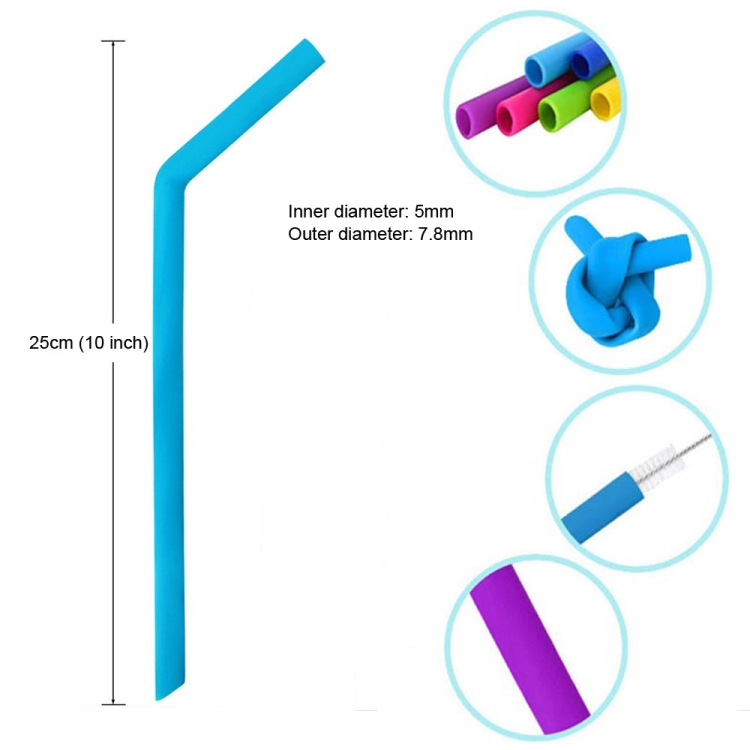5 PCS Food Grade Silicone Straws Cartoon Colorful Drink Tools with 1 Brush, Slim Bend Pipe, Length: 25cm, Outer Diameter: 7.8mm, Inner Diameter: 5mm, Random Color Delivery