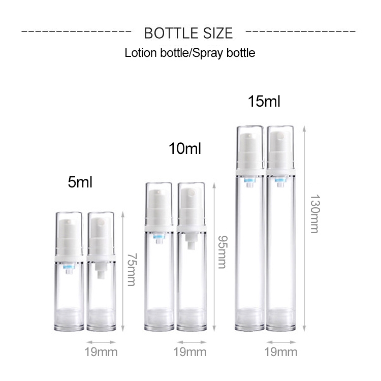 5 PCS Portable Airless Vacuum Pump Bottle Fine Mist Perfume Spray Bottle, 10ml