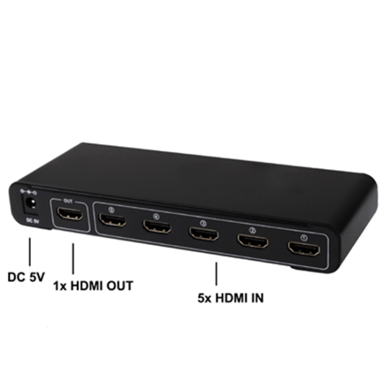 5 Ports Full HD 1080P HDMI Switch with Switch & Remote Controller, 1.3 Version (5 Ports HDMI Input, 1 Port HDMI Output)