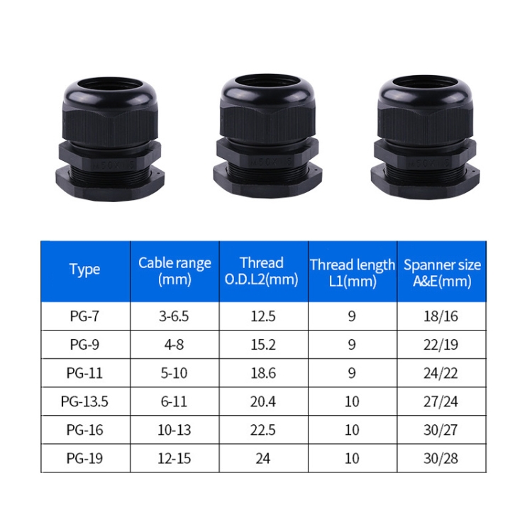 7. Packing list: PG7x20, PG9x10, PG11x6, PG13.5×5, PG16x4, PG19x5