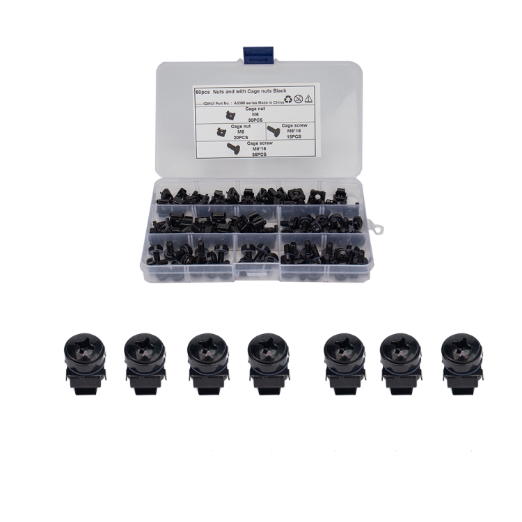 50 PCS Cage Nuts and Screw Cage Nuts M6 + Rack Screws M6x16