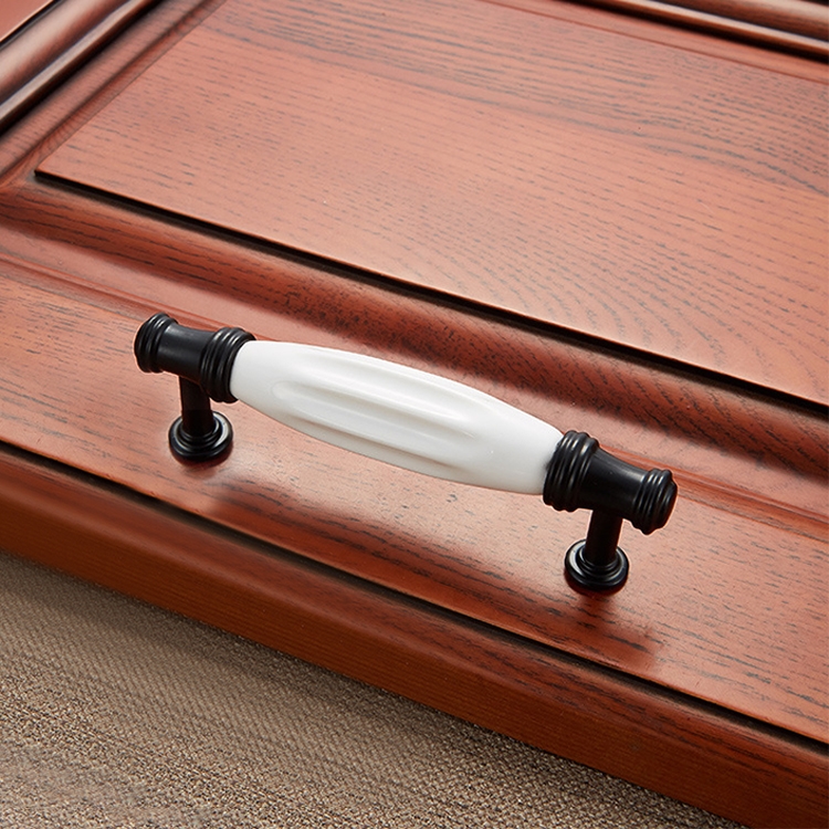 5001_96 Matte Black Octagonal White Ceramics Hardware Cabinet Handle