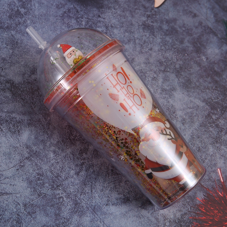 500ml Santa Claus Cartoon Portable Plastic Cup Double Micro Landscape Juice Cup