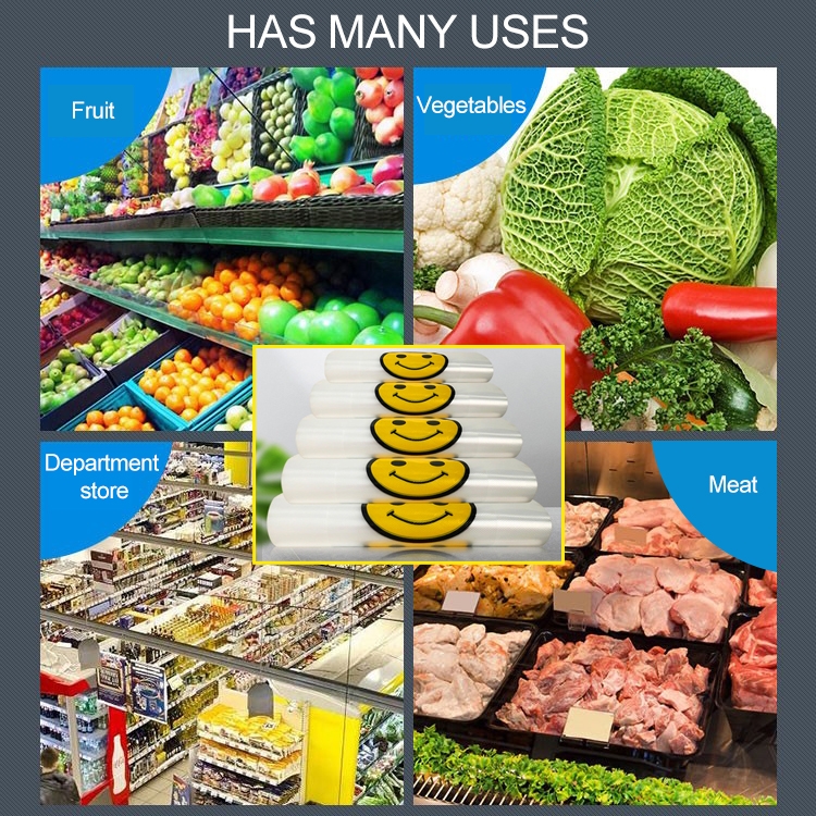50pcs / Roll 5C Thick Transparent Smiley Plastic Bag Shopping Bag Packaging Bag, Size: 22x35cm