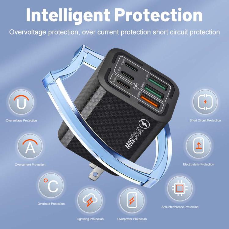 50W 3USB+3Type-C 6 Ports Fast Charging Cell Phone Charger