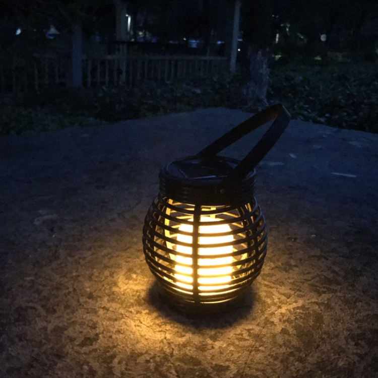 51 LEDs Hanging Cage Table Lamp Outdoor Woven Rattan Basket Lamp Solar Flame Lamp
