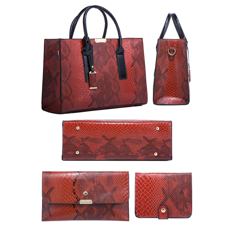 5168-1 3 In 1 Snakeskin Pattern Fashion Diagonal Handbag, Red, Black, Brown