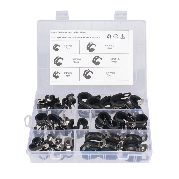 52 PCS Car Rubber Cushion Pipe Clamps Stainless Steel Clamps