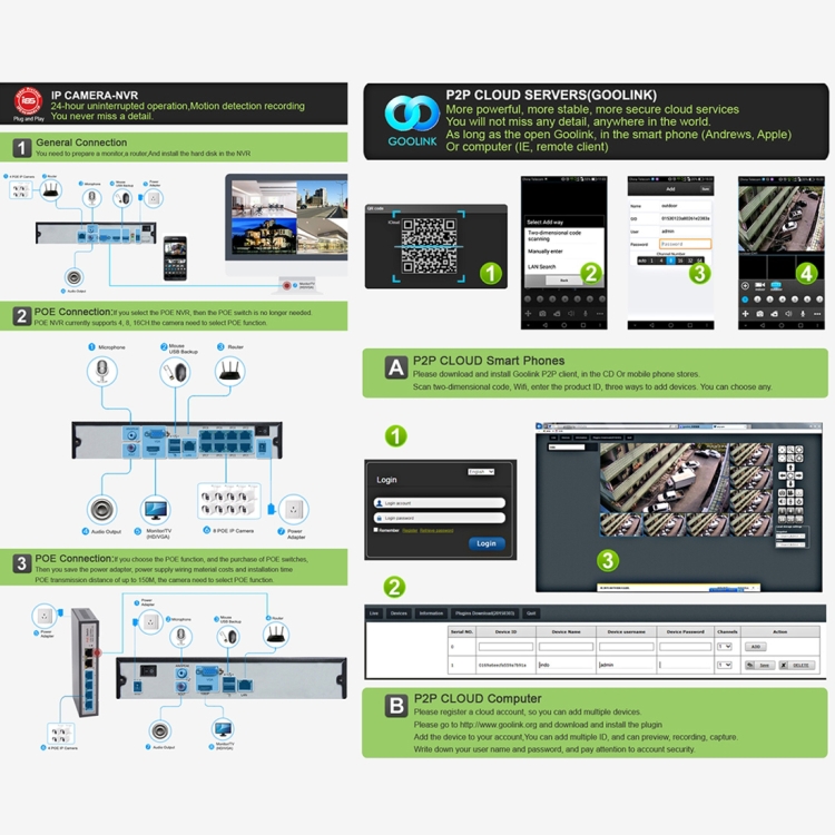 6. Support P2P mobile phone monitoring (compatible iPhone / Android).