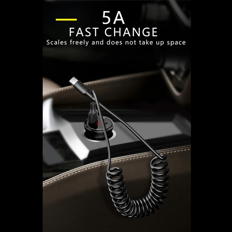 5A USB-C / Type-C to USB Retractable Coiled Fast Charging Cable