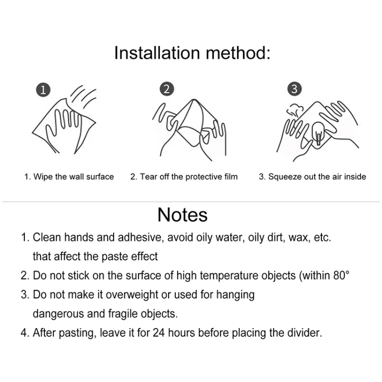 1. No need to drill holes, without affecting the appearance of the cabinet or bookshelf, tear off the back of the protective coating, and stick it on a smooth surface.