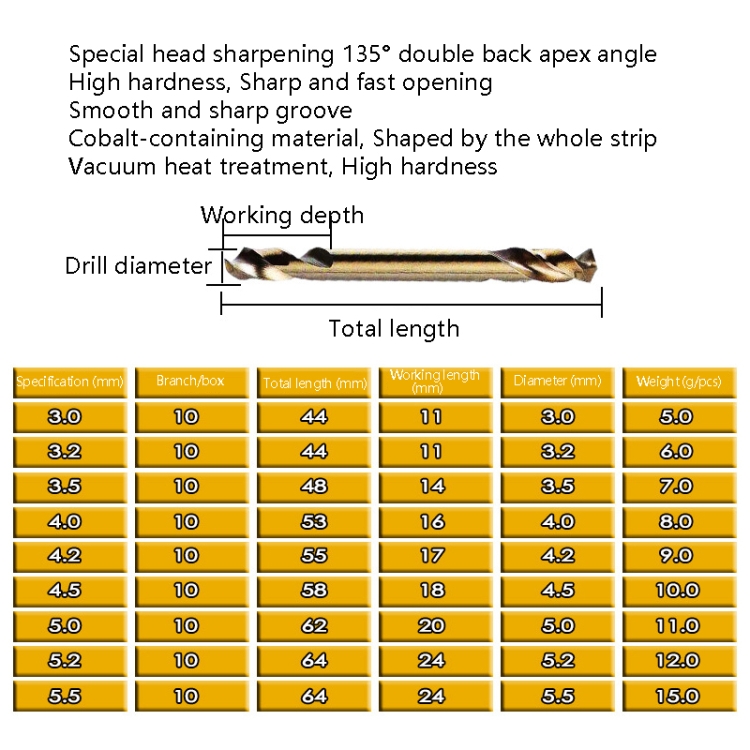 5pcs M35 Cobalt-Containing Twist Drill Bit High-Speed Steel Double Head Metal Steel Plate Expansion Hole Drill, Model: Double Head 3.0mm