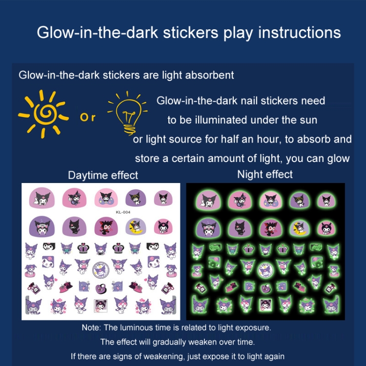 5pcs /Set Sanrio Children Non-toxic Waterproof Luminous Nail Stickers