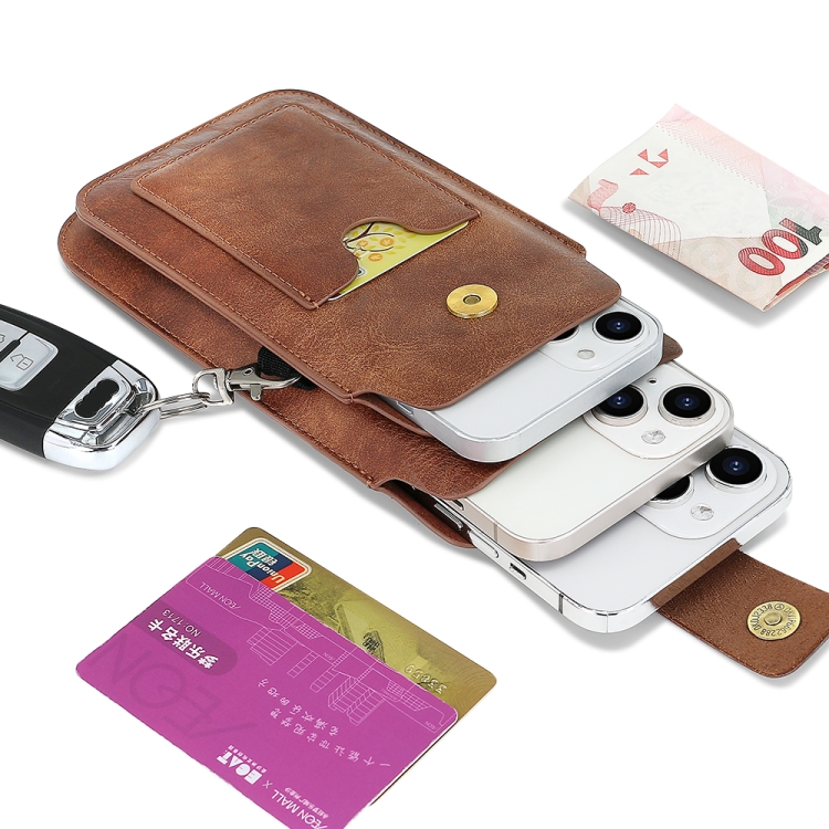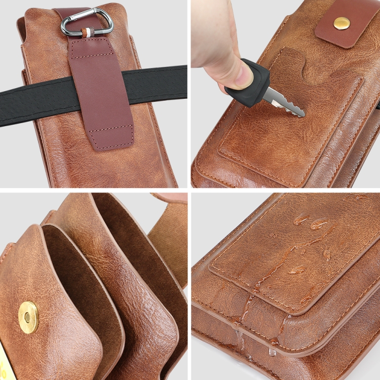 6.5-7.2 inch Universal Retro Magnetic Buckle Double Layer Phone Waist Bag
