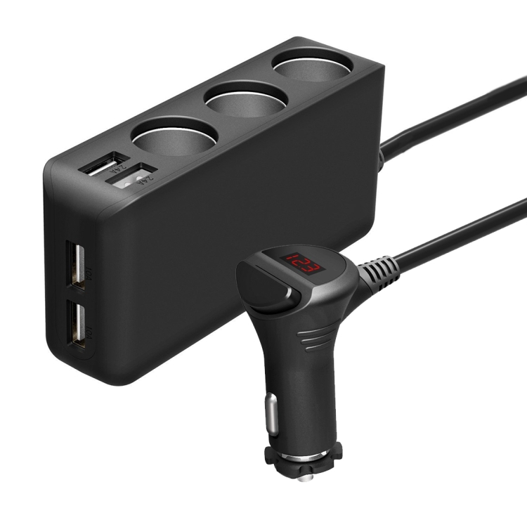 6.8A 80W Plastic Shell 3 Sockets in 1 Car Cigarette Lighter Car Charger Car Socket with 4 USB Ports and a Control Switch
